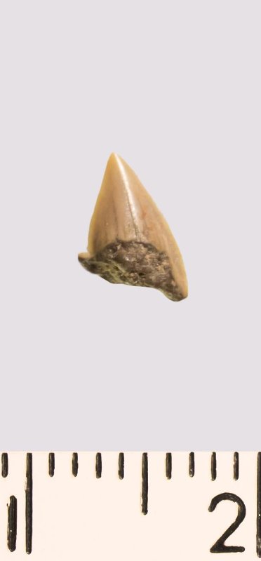 Зуб (фрагмент). Акула. Palaeoanacorax sp. Классификация: Хордовые Chordata, Позвоночные Vertebrata, Хрящевые рыбы Chondrichthyes, Пластиножаберные Elasmobranchii