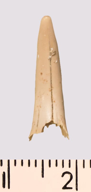 Зуб (фрагмент). Акула. Rhaphiodus sp. Классификация: Хордовые Chordata, Позвоночные Vertebrata, Хрящевые рыбы Chondrichthyes, Пластиножаберные Elasmobranchii