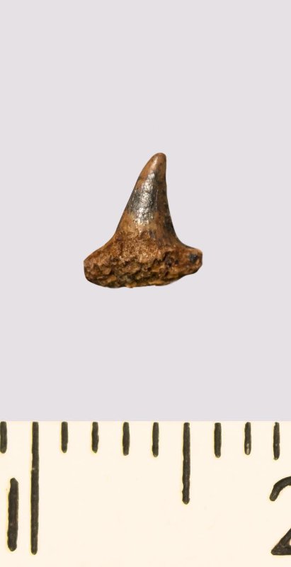 Зуб (фрагмент). Акула. Synechodus sp. Классификация: Хордовые Chordata, Позвоночные Vertebrata, Хрящевые рыбы Chondrichthyes, Пластиножаберные Elasmobranchii