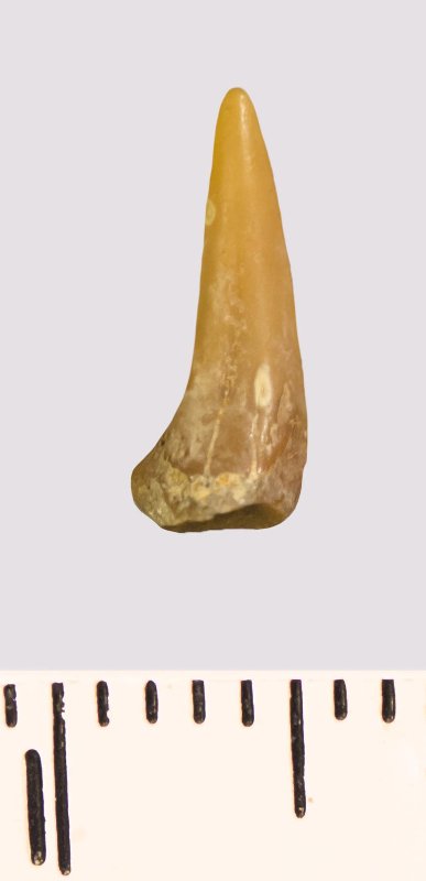 Зуб (фрагмент). Акула. Lamniformes gen. et sp. indet. Классификация: Хордовые Chordata, Позвоночные Vertebrata, Хрящевые рыбы Chondrichthyes, Пластиножаберные Elasmobranchii