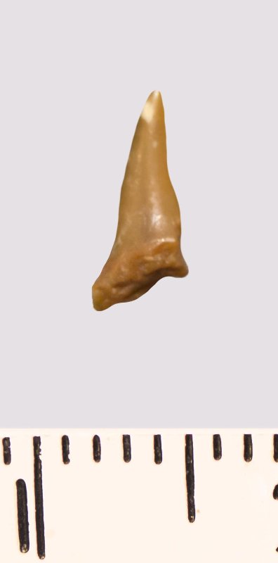 Зуб (фрагмент). Акула. Lamniformes gen. et sp. indet. Классификация: Хордовые Chordata, Позвоночные Vertebrata, Хрящевые рыбы Chondrichthyes, Пластиножаберные Elasmobranchii