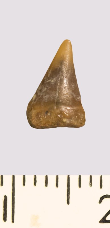 Зуб (фрагмент). Акула. Lamniformes gen. et sp. indet. Классификация: Хордовые Chordata, Позвоночные Vertebrata, Хрящевые рыбы Chondrichthyes, Пластиножаберные Elasmobranchii