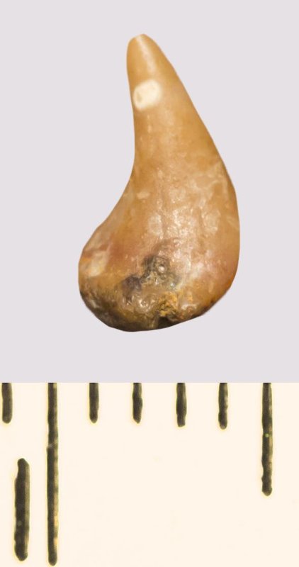 Зуб (фрагмент). Акула. Odontaspis subulata (Agassiz, 1843). Классификация: Хордовые Chordata, Позвоночные Vertebrata, Хрящевые рыбы Chondrichthyes, Пластиножаберные Elasmobranchii