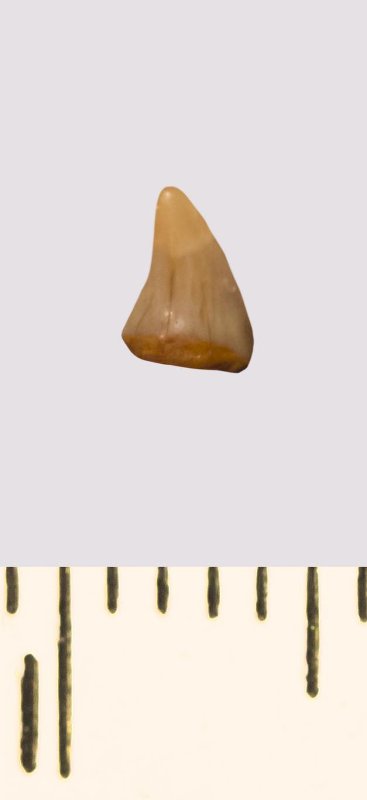 Зуб (фрагмент). Акула. Odontaspis macrorhiza (Cope) Leriche, 1902. Классификация: Хордовые Chordata, Позвоночные Vertebrata, Хрящевые рыбы Chondrichthyes, Пластиножаберные Elasmobranchii