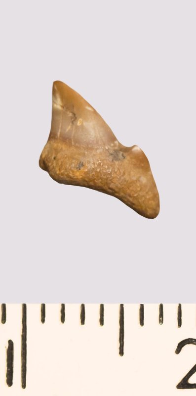 Зуб (фрагмент). Акула. Protolamna sp. Классификация: Хордовые Chordata, Позвоночные Vertebrata, Хрящевые рыбы Chondrichthyes, Пластиножаберные Elasmobranchii