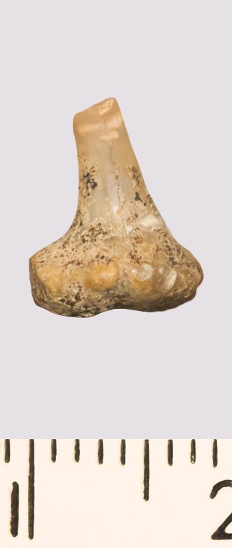 Зуб (фрагмент). Акула. Scapanorhynchus sp. Классификация: Хордовые Chordata, Позвоночные Vertebrata, Хрящевые рыбы Chondrichthyes, Пластиножаберные Elasmobranchii
