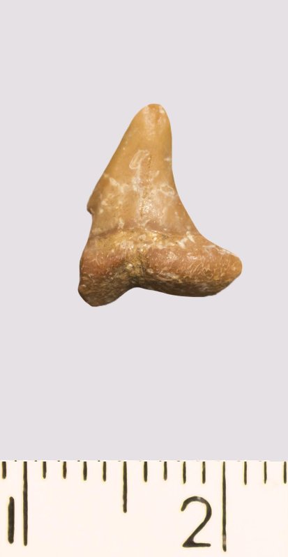 Зуб. Акула. Scapanorhynchus sp. Классификация: Хордовые Chordata, Позвоночные Vertebrata, Хрящевые рыбы Chondrichthyes, Пластиножаберные Elasmobranchii