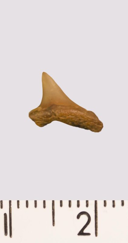 Зуб. Акула. Scapanorhynchus sp. Классификация: Хордовые Chordata, Позвоночные Vertebrata, Хрящевые рыбы Chondrichthyes, Пластиножаберные Elasmobranchii