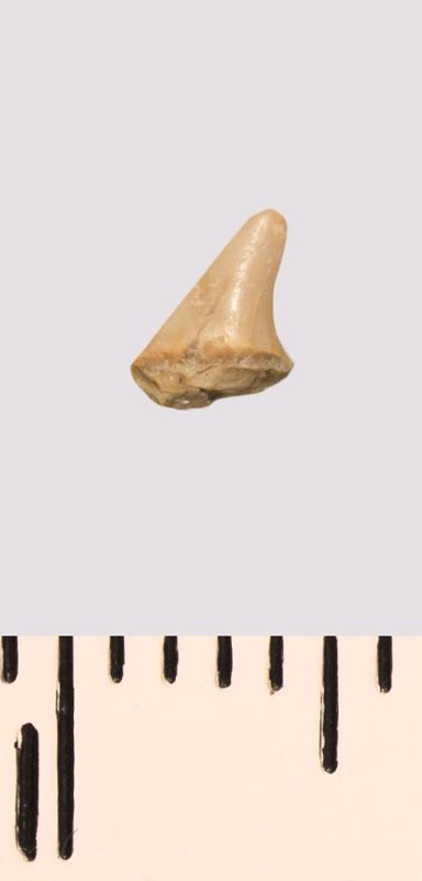 Зуб (фрагмент). Акула. Lamniformes gen. et sp. indet. Классификация: Хордовые Chordata, Позвоночные Vertebrata, Хрящевые рыбы Chondrichthyes, Пластиножаберные Elasmobranchii