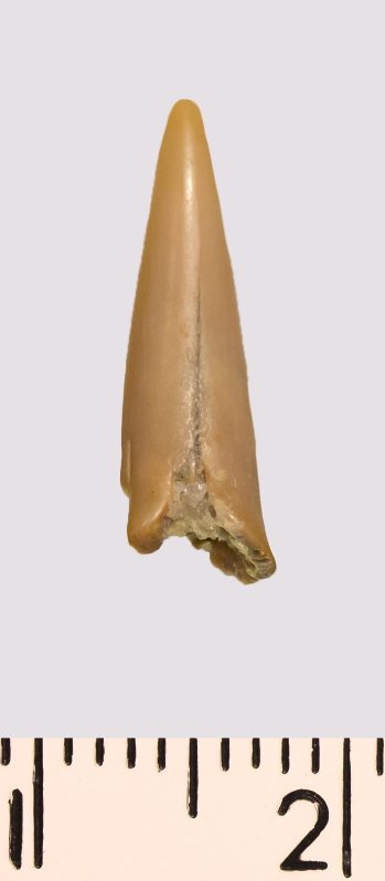 Зуб (фрагмент). Акула. Lamniformes gen. et sp. indet. Классификация: Хордовые Chordata, Позвоночные Vertebrata, Хрящевые рыбы Chondrichthyes, Пластиножаберные Elasmobranchii