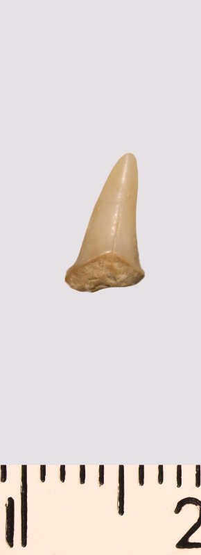 Зуб (фрагмент). Акула. Lamniformes gen. et sp. indet. Классификация: Хордовые Chordata, Позвоночные Vertebrata, Хрящевые рыбы Chondrichthyes, Пластиножаберные Elasmobranchii