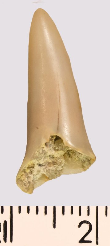 Зуб (фрагмент). Акула. Lamniformes gen. et sp. indet. Классификация: Хордовые Chordata, Позвоночные Vertebrata, Хрящевые рыбы Chondrichthyes, Пластиножаберные Elasmobranchii