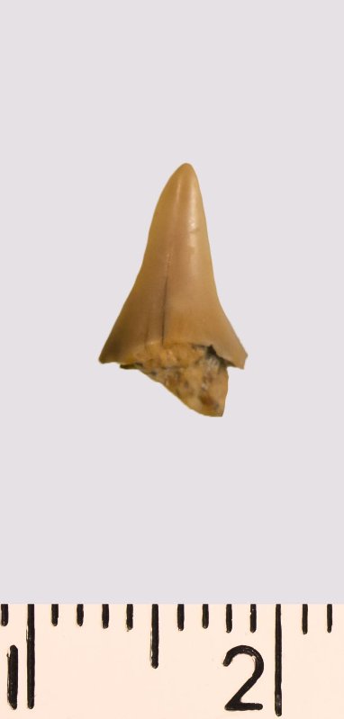 Зуб (фрагмент). Акула. Lamniformes gen. et sp. indet. Классификация: Хордовые Chordata, Позвоночные Vertebrata, Хрящевые рыбы Chondrichthyes, Пластиножаберные Elasmobranchii