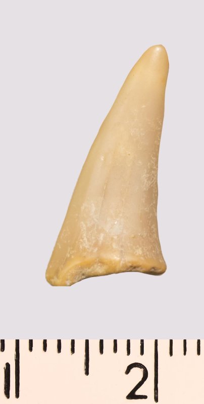 Зуб (фрагмент). Акула. Lamniformes gen. et sp. indet. Классификация: Хордовые Chordata, Позвоночные Vertebrata, Хрящевые рыбы Chondrichthyes, Пластиножаберные Elasmobranchii