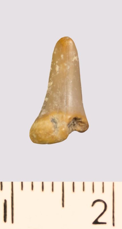 Зуб (фрагмент). Акула. Lamniformes gen. et sp. indet. Классификация: Хордовые Chordata, Позвоночные Vertebrata, Хрящевые рыбы Chondrichthyes, Пластиножаберные Elasmobranchii