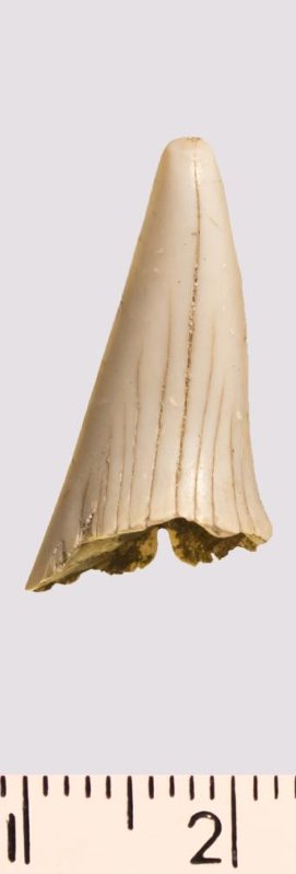 Зуб (фрагмент). Акула. Cretoxyrhina mantelli Agassiz, 1843. Классификация: Хордовые Chordata, Позвоночные Vertebrata, Хрящевые рыбы Chondrichthyes, Пластиножаберные Elasmobranchii