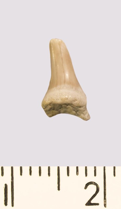 Зуб (фрагмент). Акула. Scapanorhynchus sp. Классификация: Хордовые Chordata, Позвоночные Vertebrata, Хрящевые рыбы Chondrichthyes, Пластиножаберные Elasmobranchii