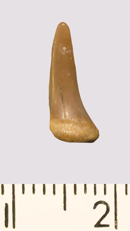 Зуб (фрагмент). Акула. Scapanorhynchus sp. Классификация: Хордовые Chordata, Позвоночные Vertebrata, Хрящевые рыбы Chondrichthyes, Пластиножаберные Elasmobranchii