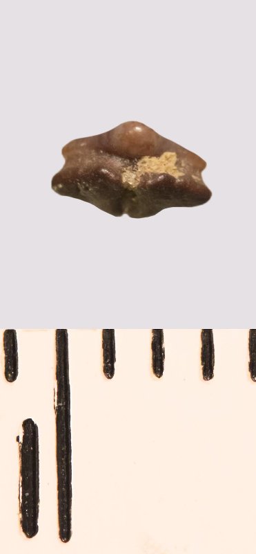 Зуб. Скат. Sclerorhynchidae gen. et sp. indet. Классификация: Хордовые Chordata, Позвоночные Vertebrata, Хрящевые рыбы Chondrichthyes, Пластиножаберные Elasmobranchii