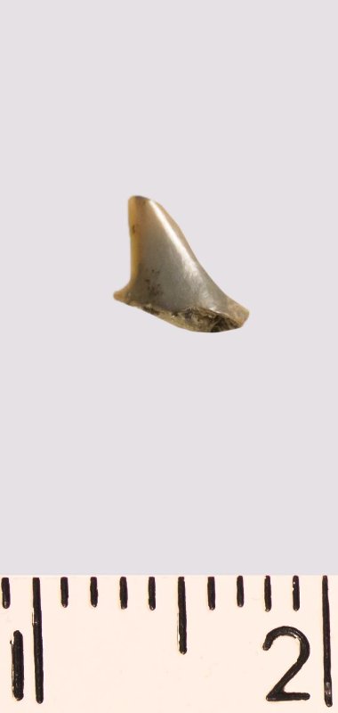Зуб (фрагмент). Акула. Lamniformes gen. et sp. indet. Классификация: Хордовые Chordata, Позвоночные Vertebrata, Хрящевые рыбы Chondrichthyes, Пластиножаберные Elasmobranchii
