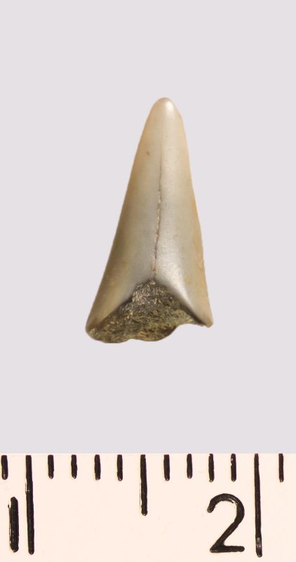 Зуб (фрагмент). Акула. Lamniformes gen. et sp. indet. Классификация: Хордовые Chordata, Позвоночные Vertebrata, Хрящевые рыбы Chondrichthyes, Пластиножаберные Elasmobranchii