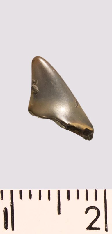 Зуб (фрагмент). Акула. Lamniformes gen. et sp. indet. Классификация: Хордовые Chordata, Позвоночные Vertebrata, Хрящевые рыбы Chondrichthyes, Пластиножаберные Elasmobranchii