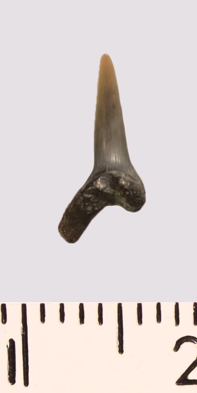 Зуб. Акула. Odontaspis striatula Dalinkevicius, 1935. Классификация: Хордовые Chordata, Позвоночные Vertebrata, Хрящевые рыбы Chondrichthyes, Пластиножаберные Elasmobranchii