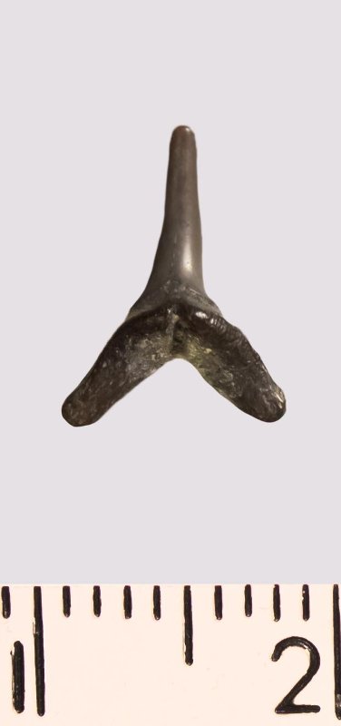 Зуб. Акула. Odontaspis striatula Dalinkevicius, 1935. Классификация: Хордовые Chordata, Позвоночные Vertebrata, Хрящевые рыбы Chondrichthyes, Пластиножаберные Elasmobranchii
