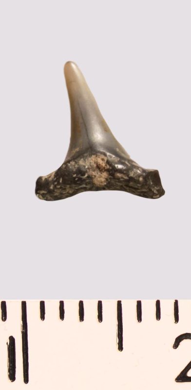 Зуб. Акула. Odontaspis striatula Dalinkevicius, 1935. Классификация: Хордовые Chordata, Позвоночные Vertebrata, Хрящевые рыбы Chondrichthyes, Пластиножаберные Elasmobranchii