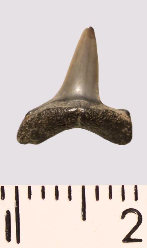 Зуб. Акула. Odontaspis striatula Dalinkevicius, 1935. Классификация: Хордовые Chordata, Позвоночные Vertebrata, Хрящевые рыбы Chondrichthyes, Пластиножаберные Elasmobranchii