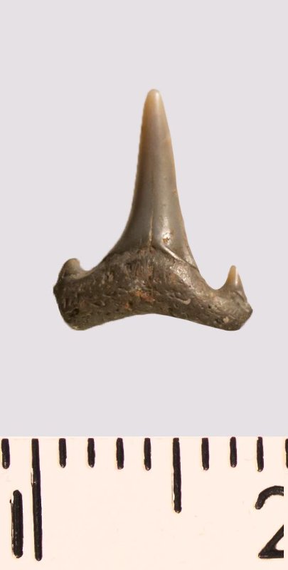Зуб. Акула. Odontaspis striatula Dalinkevicius, 1935. Классификация: Хордовые Chordata, Позвоночные Vertebrata, Хрящевые рыбы Chondrichthyes, Пластиножаберные Elasmobranchii