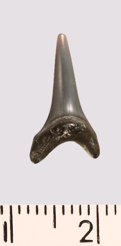 Зуб. Акула. Odontaspis macrorhiza (Cope) Leriche, 1902. Классификация: Хордовые Chordata, Позвоночные Vertebrata, Хрящевые рыбы Chondrichthyes, Пластиножаберные Elasmobranchii