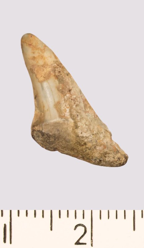 Зуб (фрагмент). Акула. Cretoxyrhina sp. Классификация: Хордовые Chordata, Позвоночные Vertebrata, Хрящевые рыбы Chondrichthyes, Пластиножаберные Elasmobranchii