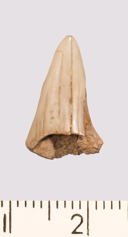 Зуб (фрагмент). Акула. Cretoxyrhina sp. Классификация: Хордовые Chordata, Позвоночные Vertebrata, Хрящевые рыбы Chondrichthyes, Пластиножаберные Elasmobranchii