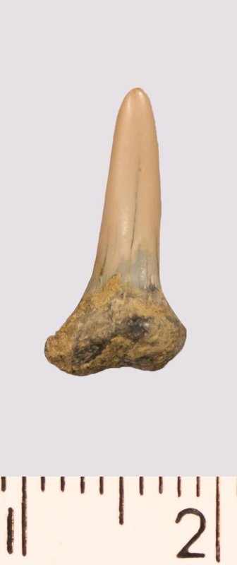 Зуб (фрагмент). Акула. Scapanorhynchus sp. Классификация: Хордовые Chordata, Позвоночные Vertebrata, Хрящевые рыбы Chondrichthyes, Пластиножаберные Elasmobranchii