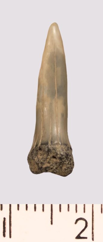 Зуб (фрагмент). Акула. Scapanorhynchus sp. Классификация: Хордовые Chordata, Позвоночные Vertebrata, Хрящевые рыбы Chondrichthyes, Пластиножаберные Elasmobranchii