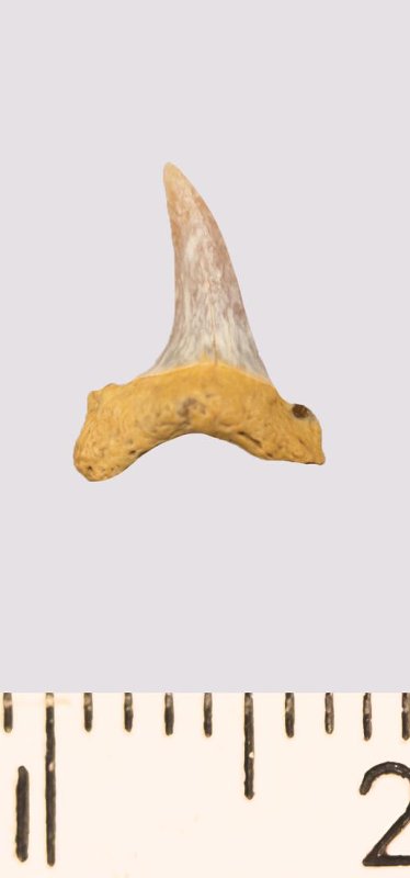 Зуб. Акула. Scapanorhynchus rhaphiodon Agassiz, 1843. Классификация: Хордовые Chordata, Позвоночные Vertebrata, Хрящевые рыбы Chondrichthyes, Пластиножаберные Elasmobranchii