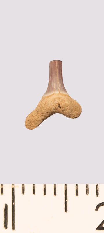 Зуб. Акула. Scapanorhynchus rhaphiodon Agassiz, 1843. Классификация: Хордовые Chordata, Позвоночные Vertebrata, Хрящевые рыбы Chondrichthyes, Пластиножаберные Elasmobranchii
