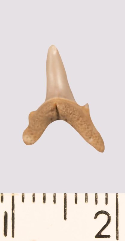Зуб. Акула. Odontaspis venusta (Leriche, 1929). Классификация: Хордовые Chordata, Позвоночные Vertebrata, Хрящевые рыбы Chondrichthyes, Пластиножаберные Elasmobranchii