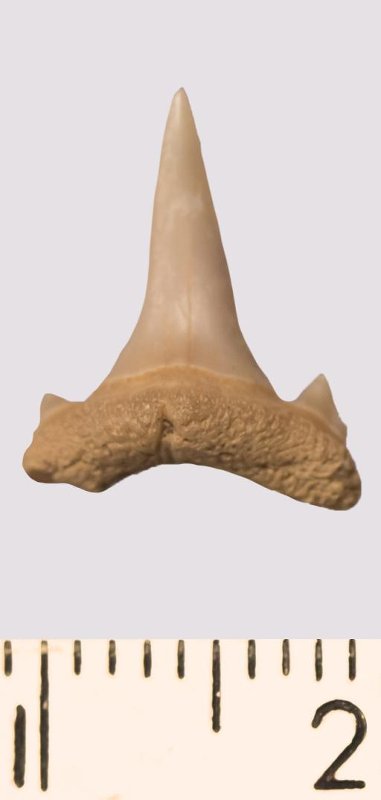 Зуб. Акула. Odontaspis venusta (Leriche, 1929). Классификация: Хордовые Chordata, Позвоночные Vertebrata, Хрящевые рыбы Chondrichthyes, Пластиножаберные Elasmobranchii