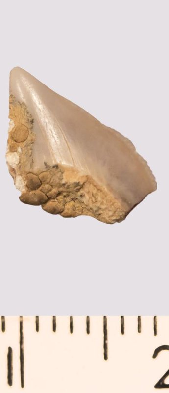 Зуб (фрагмент). Акула. Anacorax sp. Классификация: Хордовые Chordata, Позвоночные Vertebrata, Хрящевые рыбы Chondrichthyes, Пластиножаберные Elasmobranchii