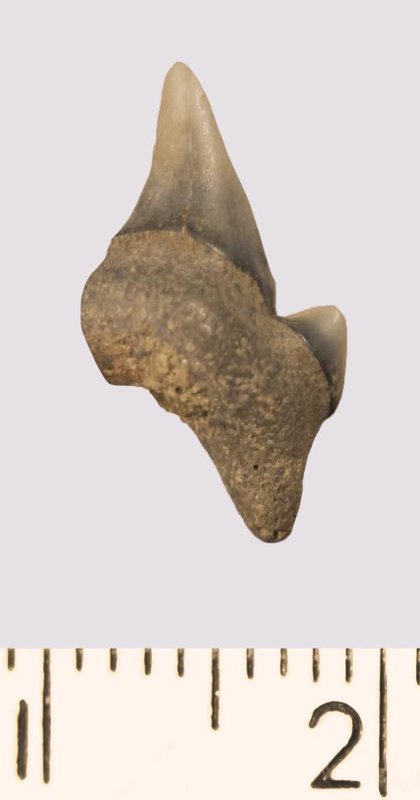Зуб. Акула. Odontaspis macrorhiza (Cope) Leriche, 1902. Классификация: Хордовые Chordata, Позвоночные Vertebrata, Хрящевые рыбы Chondrichthyes, Пластиножаберные Elasmobranchii