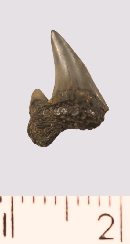 Зуб. Акула. Odontaspis macrorhiza (Cope) Leriche, 1902. Классификация: Хордовые Chordata, Позвоночные Vertebrata, Хрящевые рыбы Chondrichthyes, Пластиножаберные Elasmobranchii