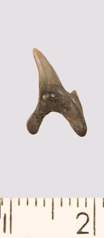 Зуб. Акула. Odontaspis macrorhiza (Cope) Leriche, 1902. Классификация: Хордовые Chordata, Позвоночные Vertebrata, Хрящевые рыбы Chondrichthyes, Пластиножаберные Elasmobranchii
