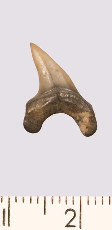 Зуб. Акула. Odontaspis macrorhiza (Cope) Leriche, 1902. Классификация: Хордовые Chordata, Позвоночные Vertebrata, Хрящевые рыбы Chondrichthyes, Пластиножаберные Elasmobranchii