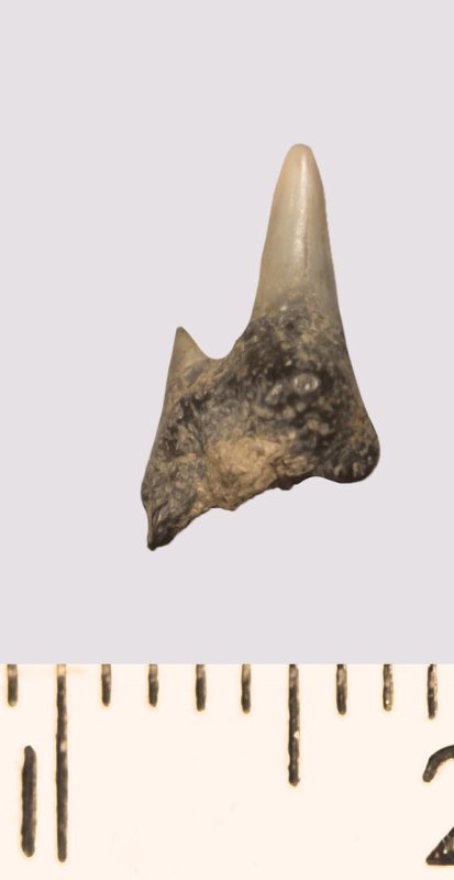 Зуб. Акула. Pseudoscapanorhynchidae gen. et sp. indet. Классификация: Хордовые Chordata, Позвоночные Vertebrata, Хрящевые рыбы Chondrichthyes, Пластиножаберные Elasmobranchii