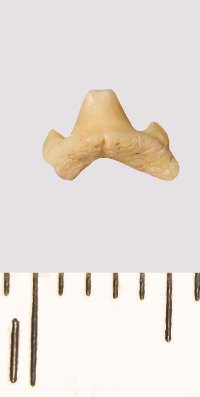 Зуб. Акула. Scapanorhynchus rhaphiodon Agassiz, 1843. Классификация: Хордовые Chordata, Позвоночные Vertebrata, Хрящевые рыбы Chondrichthyes, Пластиножаберные Elasmobranchii