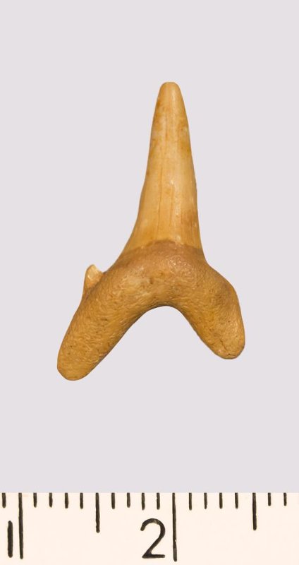 Зуб. Акула. Rhaphiodus sp. Классификация: Хордовые Chordata, Позвоночные Vertebrata, Хрящевые рыбы Chondrichthyes, Пластиножаберные Elasmobranchii