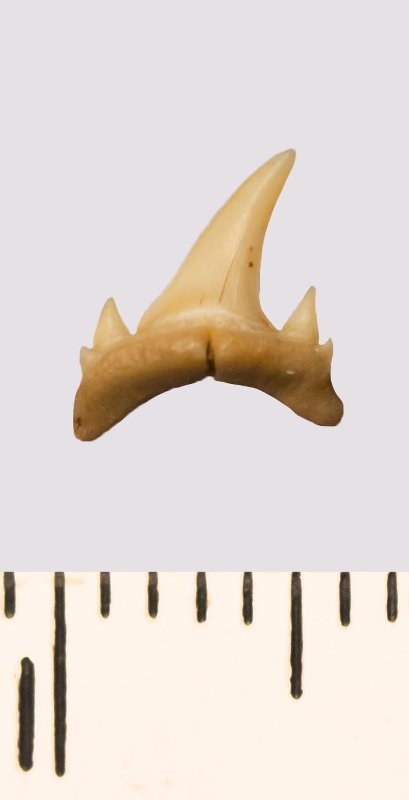 Зуб. Акула. Scapanorhynchus rhaphiodon Agassiz, 1843. Классификация: Хордовые Chordata, Позвоночные Vertebrata, Хрящевые рыбы Chondrichthyes, Пластиножаберные Elasmobranchii