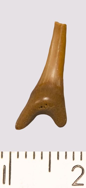 Зуб. Акула. Rhaphiodus sp. Классификация: Хордовые Chordata, Позвоночные Vertebrata, Хрящевые рыбы Chondrichthyes, Пластиножаберные Elasmobranchii